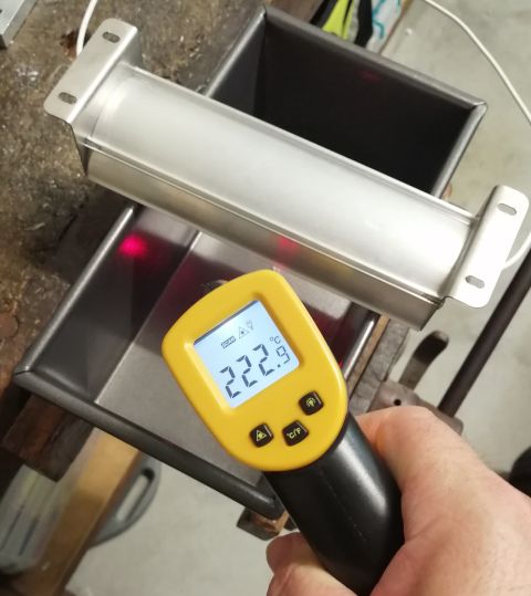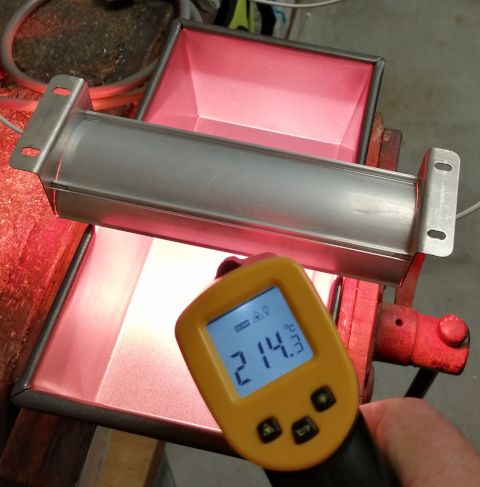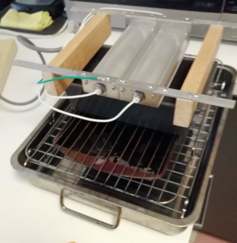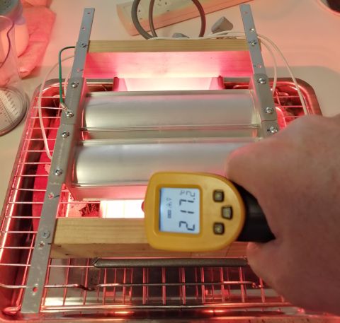 And now for a temperature test with 2 lamps in the baking test rig.